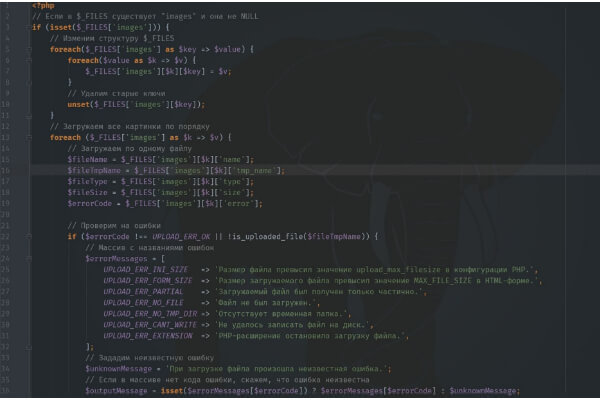 Разберём механизм загрузки нескольких изображений за один раз с локальной машины пользователя. Продолжим дальше работать с $_FILES. Наша новая HTML-форма будет немного отличаться от старой.