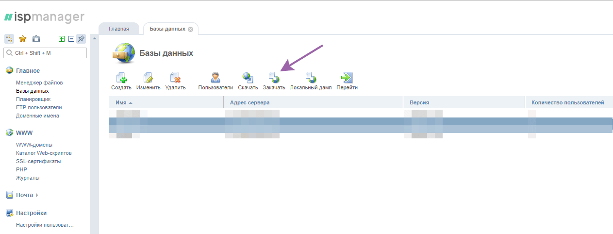 Заходим в ISPmanager под пользователем root (на новом сервере).