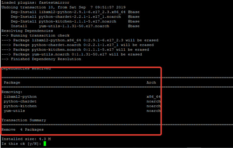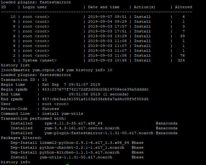 Так же всю информацию об истории установки/удаления пакетов менеджером yum можно посмотреть в логе /var/log/yum.log: